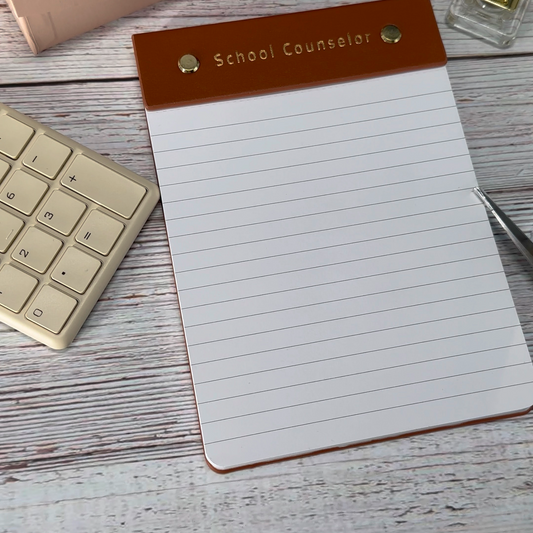 School Counselor Notepad Brown Faux Leather with Gold Detailing